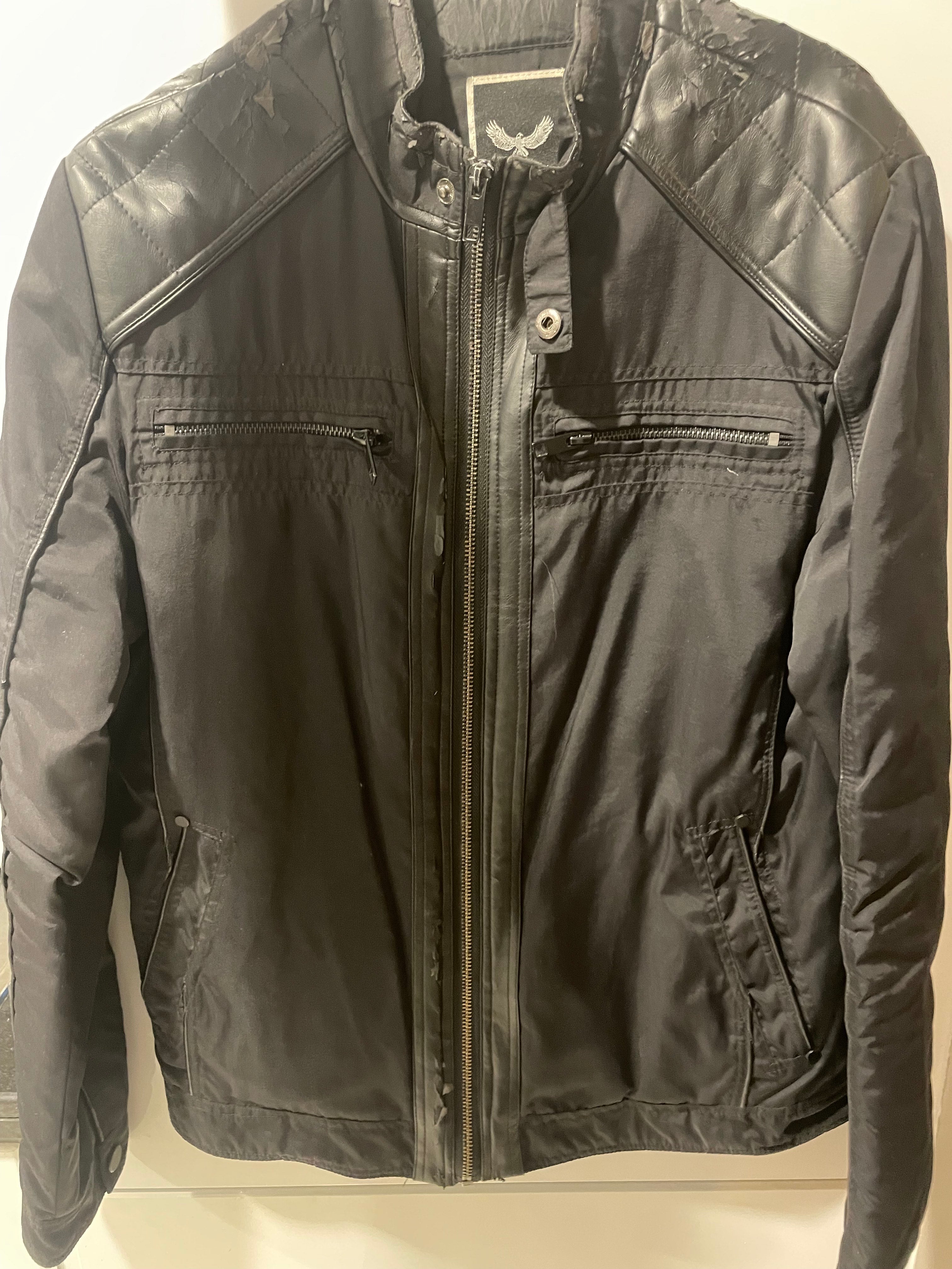 • Whilst the jacket as a whole is black. The leather parts are black, but the rest seems slightly lighter in colour