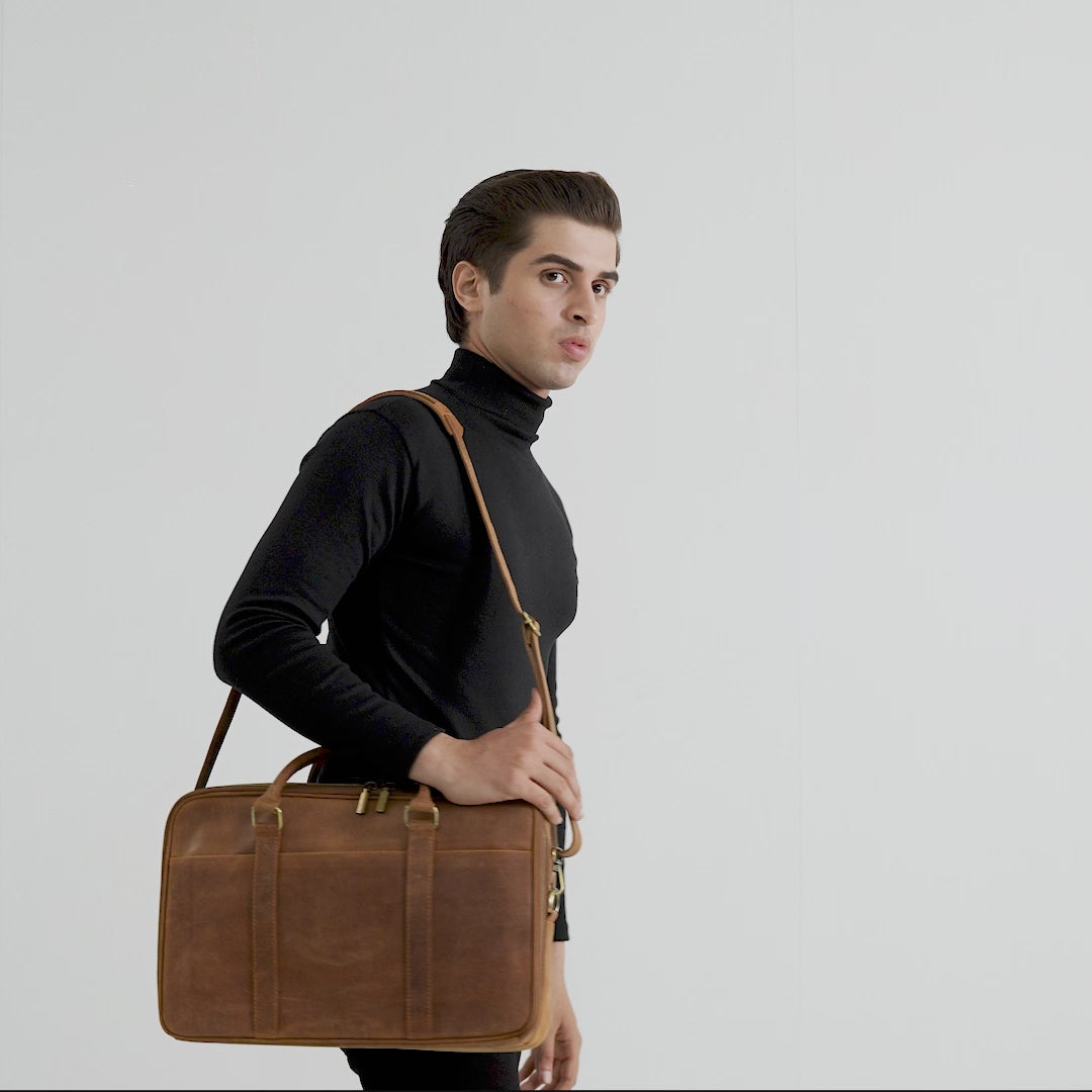 The Preston Vintage Tan Leather Briefcase
